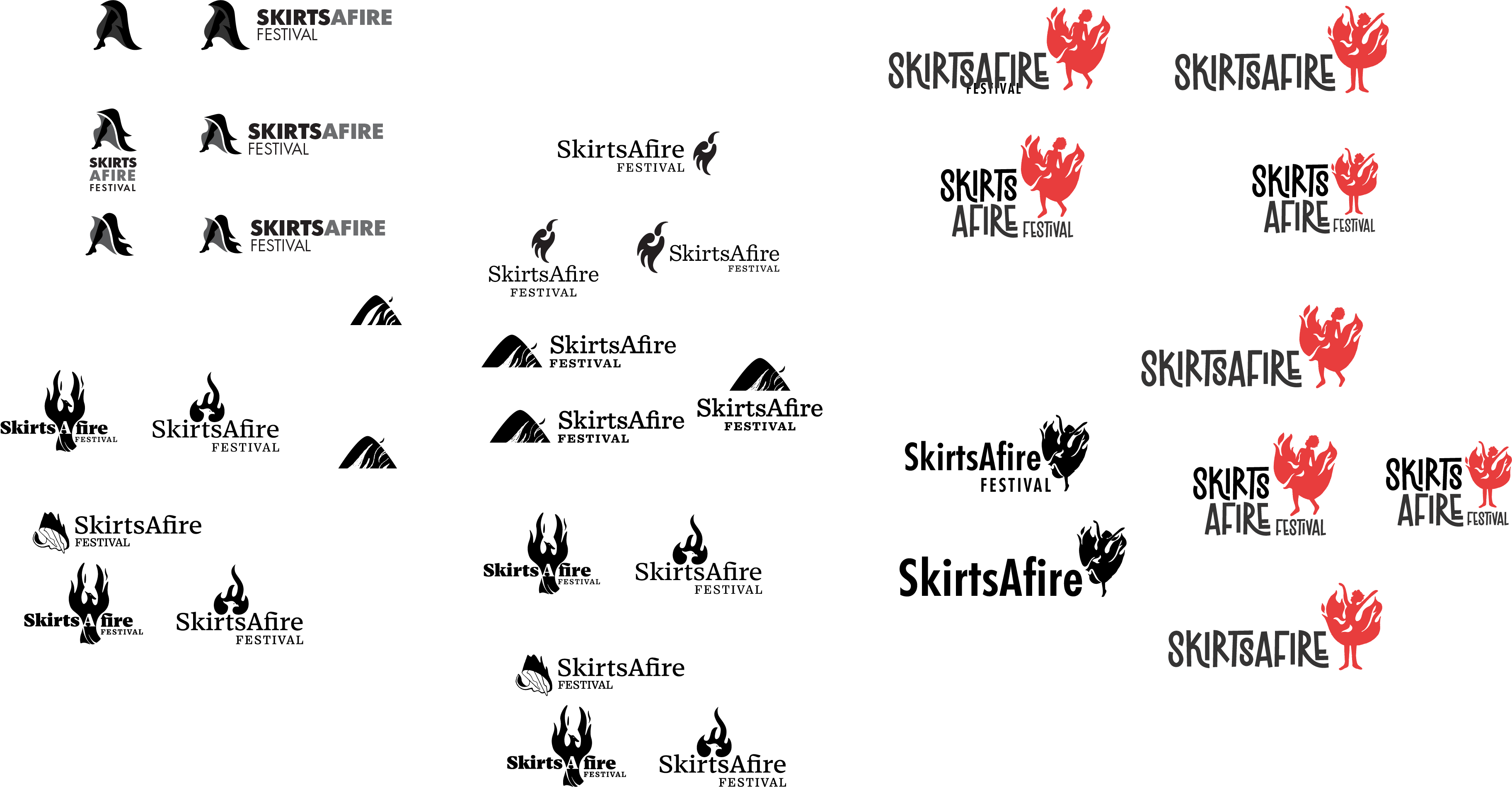 Above: Some different concepts we pitched for the new SkirtsAFire Festival logo.